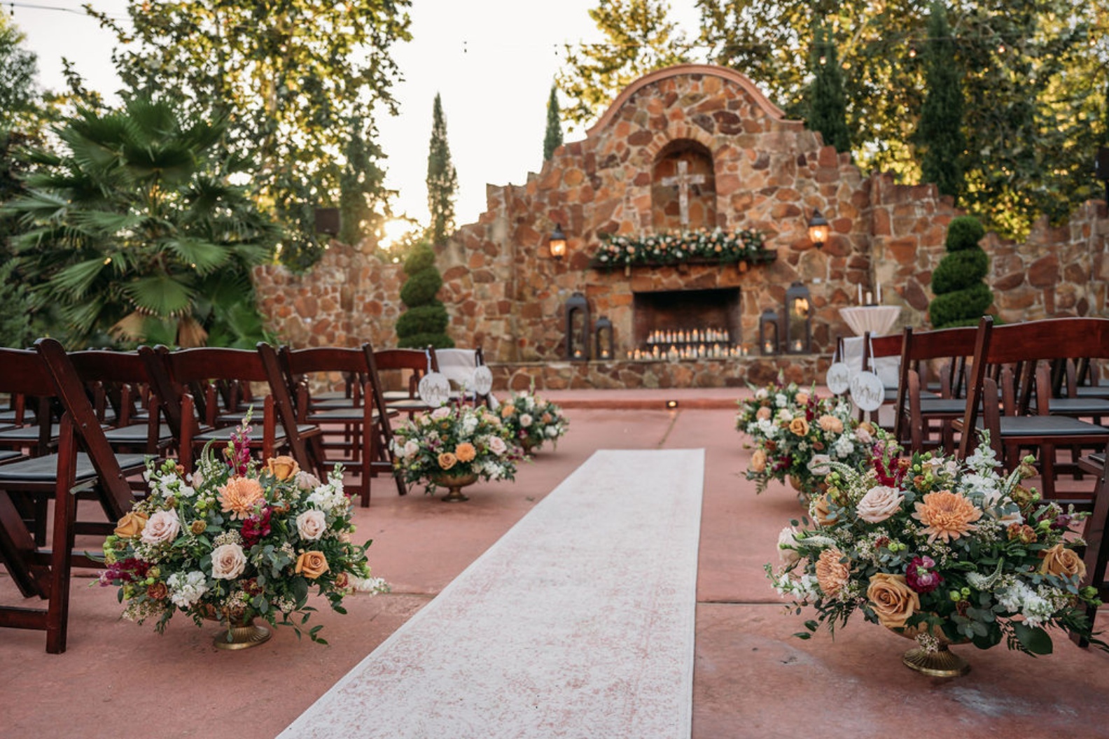 As we mentioned earlier in the blog post, this fall wedding ceremony would take place outside in front of the Grand Fireplace. How stunning does this set-up look?
