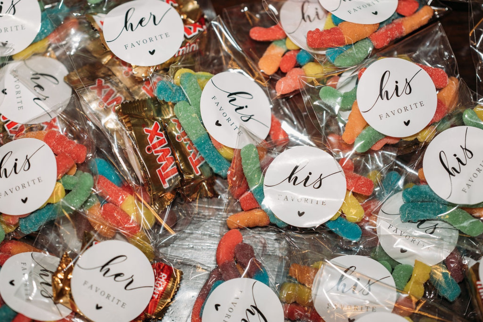 Looking for wedding favor ideas? How cute are these “His & Her Favorites” treats?