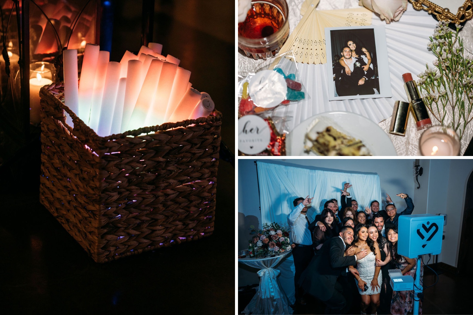 Before we get started with this October wedding day, we would first like to say thank you to all of the talented wedding professionals that helped bring this magical day to life. We’ll mention several of them throughout this blog post, as well as provide a complete vendor list at the end. This included the awesome San Angel Photo and Film, who captured all of the photos you’ll see in the collages below.