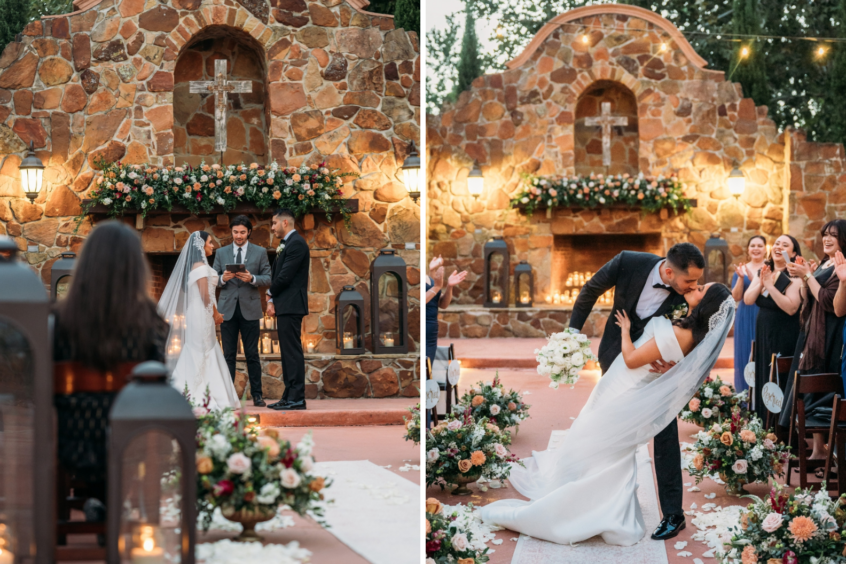 As highlighted above, our venue, Madera Estates, has both an indoor and outdoor space available for couples. A popular layout involves our couples tying the knot at their ceremony outside in front of the Grand Fireplace before heading inside to the Hacienda for the reception. Along with this ensuring you’re covered (even if rain pops up on the forecast), this also makes sense for a few other reasons.